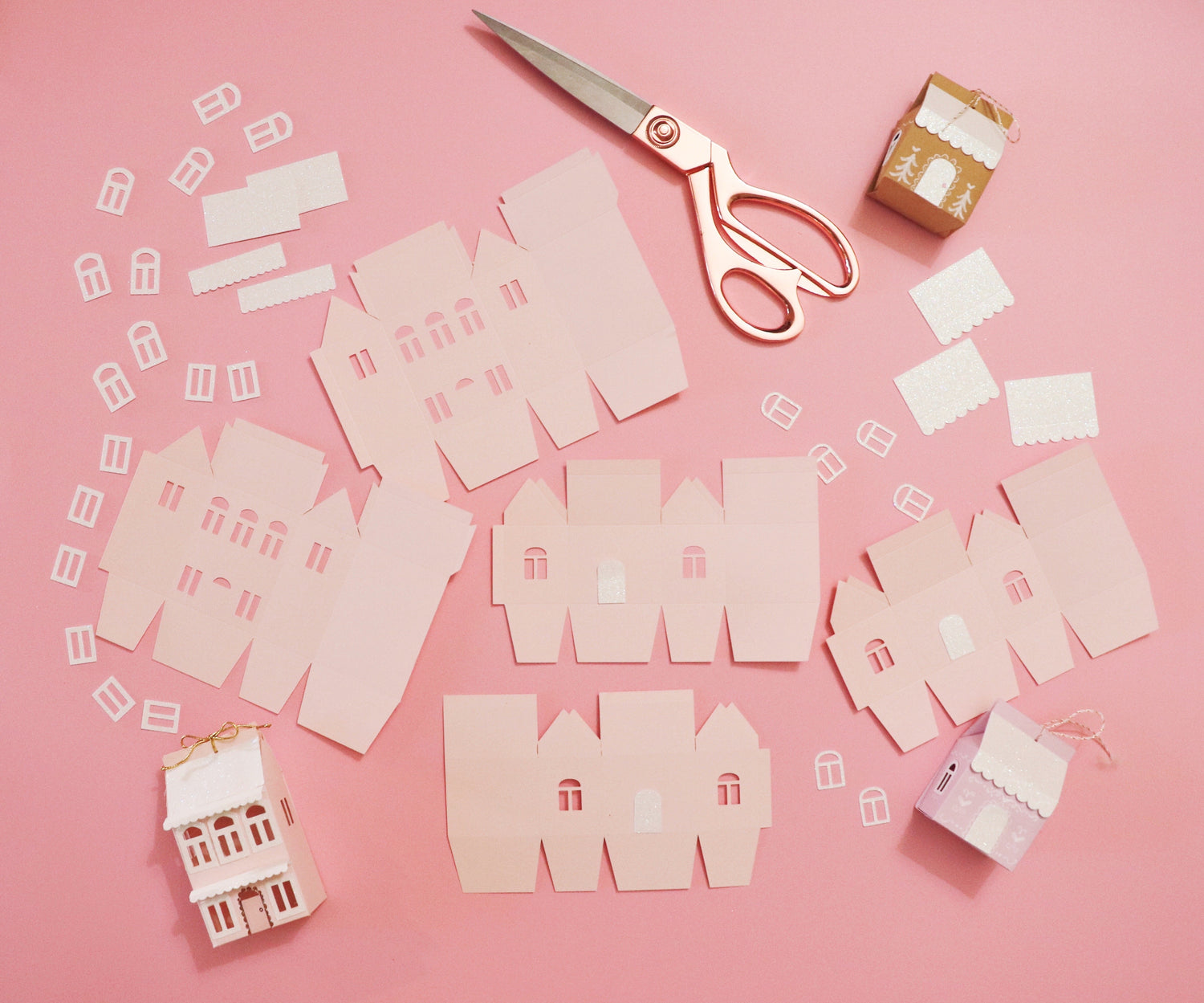 2 Houses: This 2 Story house with scallop trim comes with (14) Glittery window frames (2) Glittery roofs (4) Scalloped trims (2) Houses