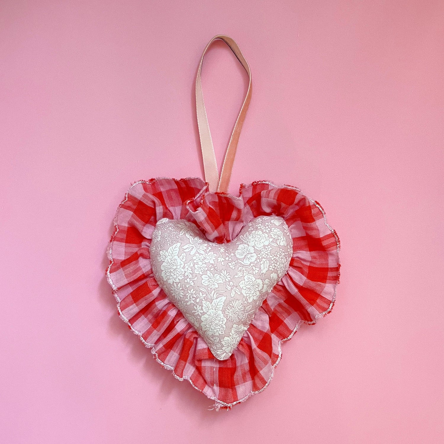 Liberty London floral heart with a scallop edge gingham ruffle.